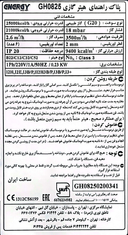 هیترگازی ENERGY مدل GH0825