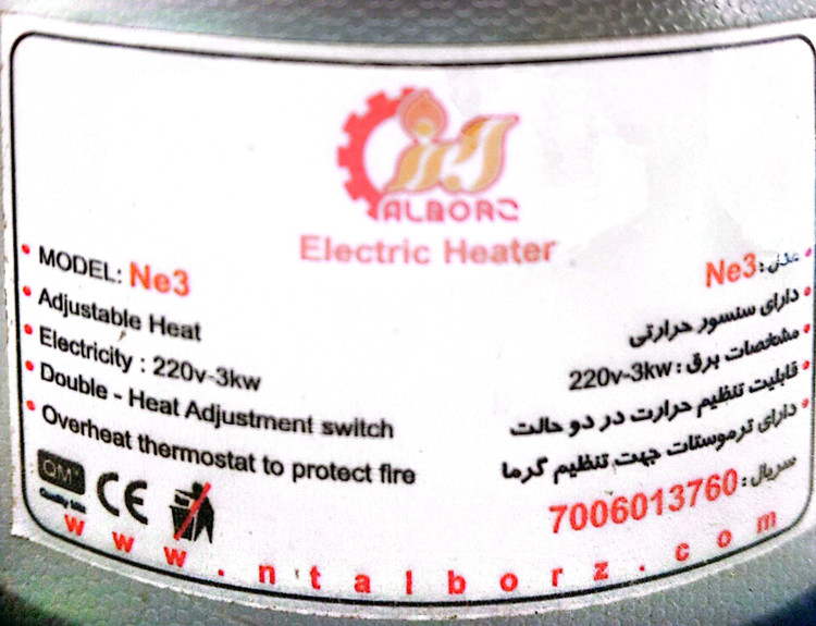 هیتر برقی نیرو تهویه ی البرز مدل Ne3